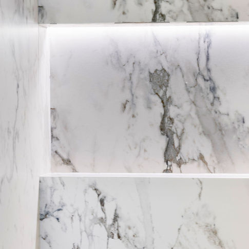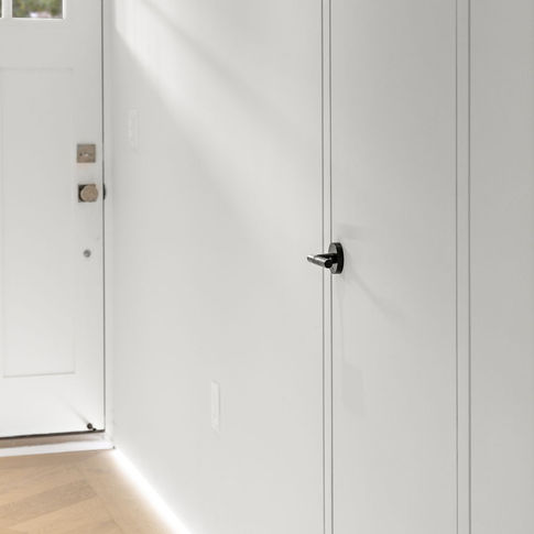 Each residence was finished to an exacting standard, featuring imported Italian kitchens with Miele appliances, custom trimless doors with concealed hinges, and a seamless trimless aesthetic throughout. Integrated LED baseboard lighting, wide-plank herringbone flooring, large-format Italian porcelain slabs, and select limewash wall finishes bring warmth, texture, and depth to the modern interior palette.